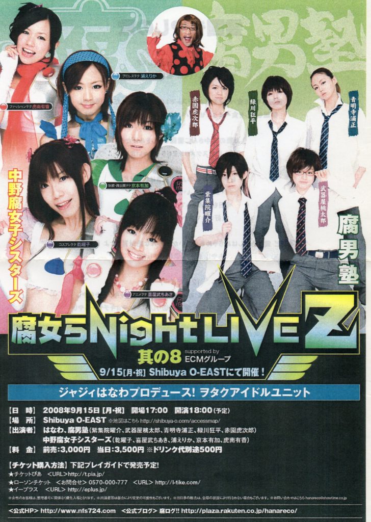 『中野腐女シスターズ』は2006年結成のヲタク系アイドルユニット。2011年11月に音楽活動を停止しますが、同じメンバーによる男装ユニット『腐男塾』はその後も継続していきます。
